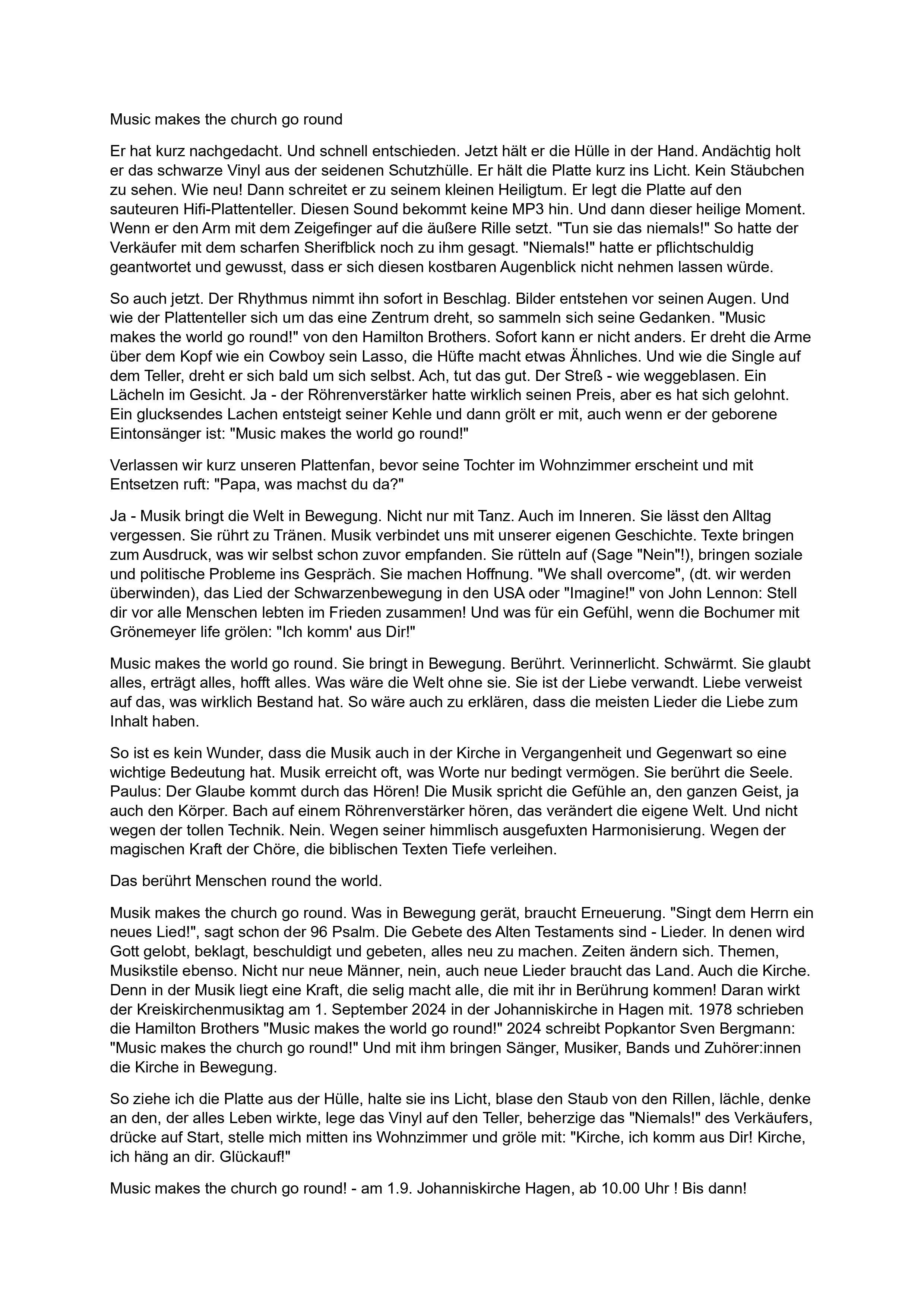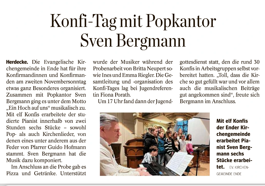 Der Popkantor unseres Kirchenkreises, Sven Bergmann schreibt: